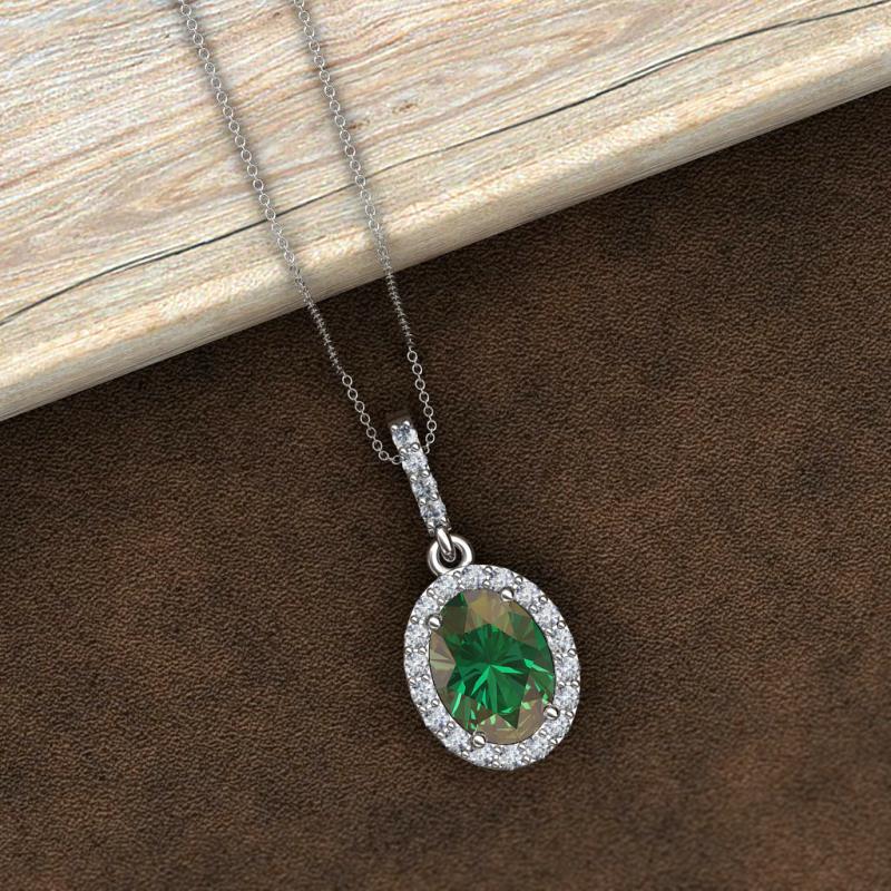Oval Cut (8x6 mm) Lab Created Alexandrite and Round Diamond 1 3/4 ctw Womens Halo Pendant Necklace 18K White Gold.Included 16 Inches 18K White Gold Chain More Details ...