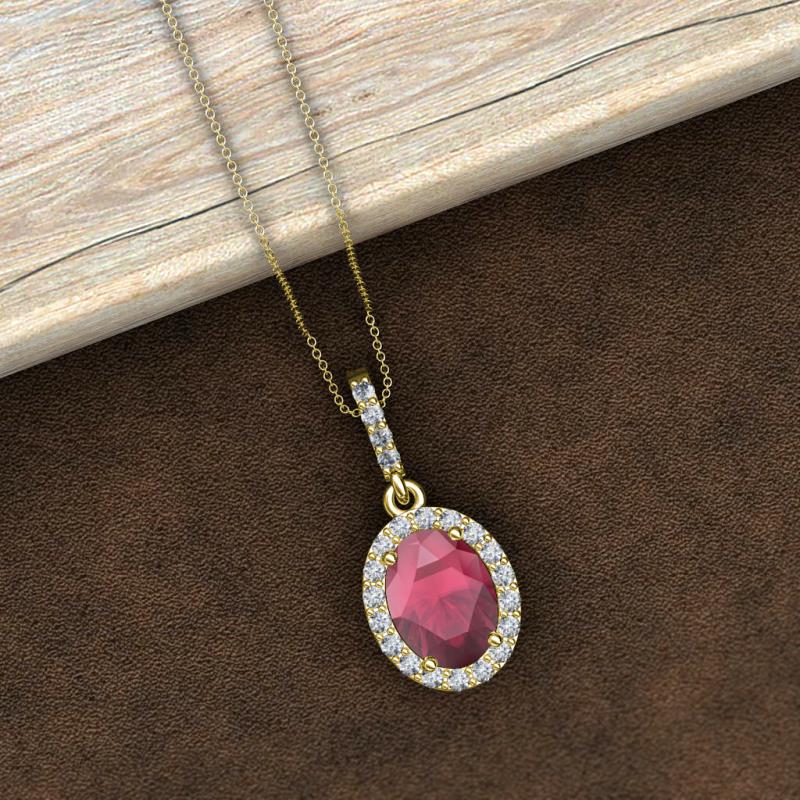 Oval Cut (8x6 mm) Rhodolite Garnet and Round Diamond 1 3/4 ctw Womens Halo Pendant Necklace 18K Yellow Gold.Included 16 Inches 18K Yellow Gold Chain More Details ...