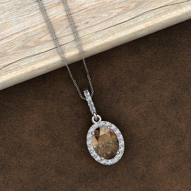 Oval Cut (8x6 mm) Smoky Quartz and Round Diamond 1 1/2 ctw Womens Halo Pendant Necklace 14K White Gold.Included 16 Inches 14K White Gold Chain More Details ...