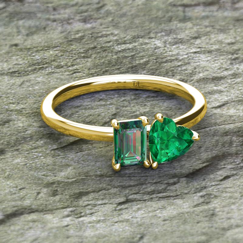 Emerald & Heart Shape Lab Created Alexandrite & Lab Created Emerald 1.95 ctw Four Prong Womens 2 Stone Duo Engagement Ring 14K Yellow Gold More Details ...