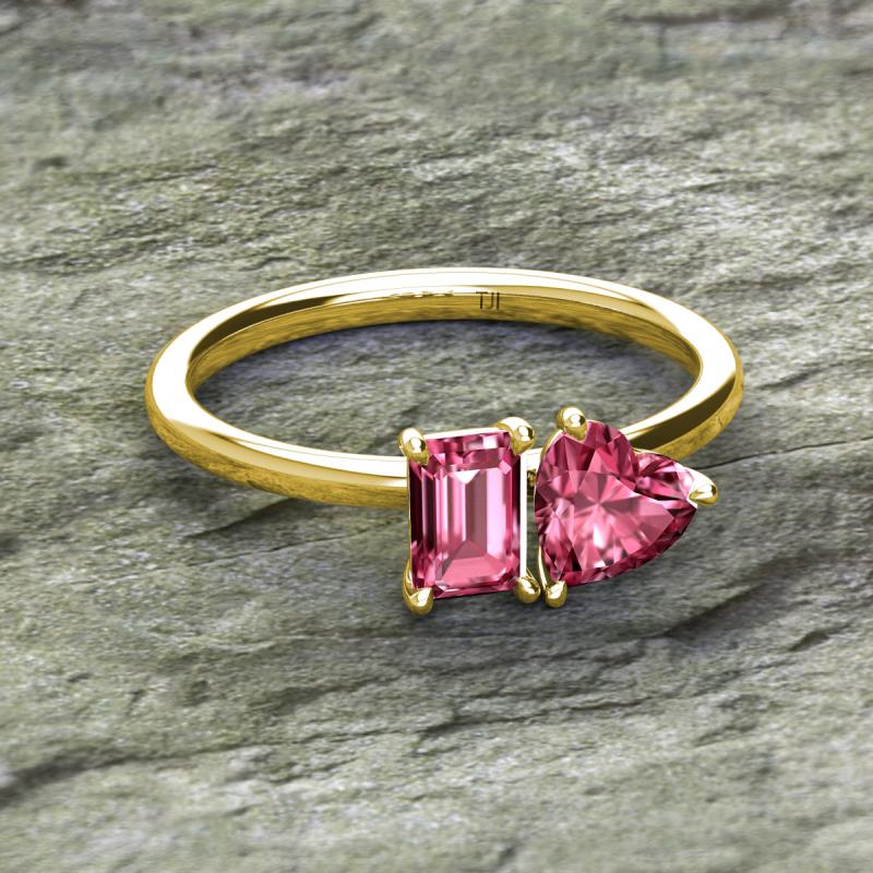 Simple and beautiful, this enchanting 2 Stone Duo Ring flaunting an Emerald Shape Pink Tourmaline dazzling along with Heart Shape Pink Tourmaline are perfect for the women who have a modern outlook and are willing to be unique.