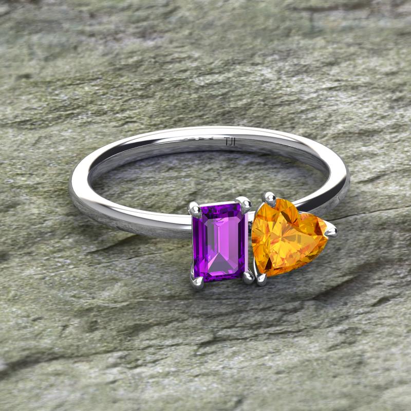 Emerald Shape Amethyst & Heart Shape Citrine 1.48 ctw Four Prong Womens 2 Stone Duo Engagement Ring 10K White Gold More Details ...