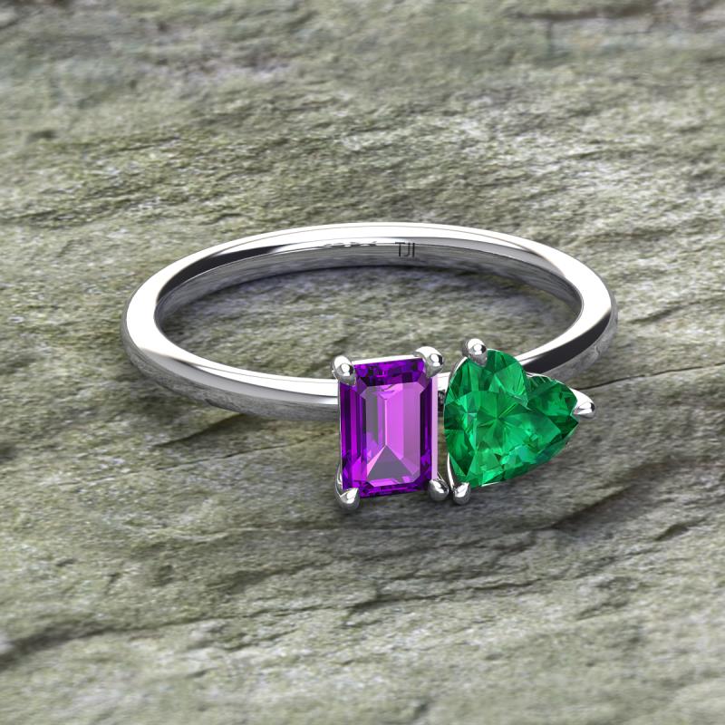 Emerald Shape Amethyst & Heart Shape Lab Created Emerald 1.52 ctw Four Prong Womens 2 Stone Duo Engagement Ring 925 Sterling Silver More Details ...