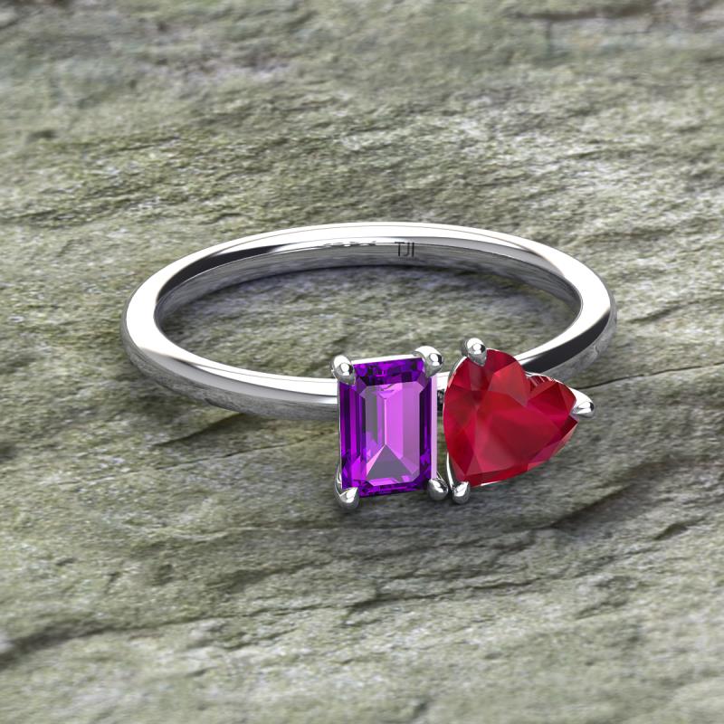 Emerald Shape Amethyst & Heart Shape Lab Created Ruby 1.87 ctw Four Prong Womens 2 Stone Duo Engagement Ring 10K White Gold More Details ...