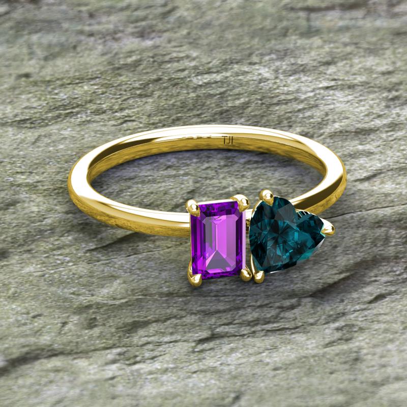 Emerald Shape Amethyst & Heart Shape London Blue Topaz 1.80 ctw Four Prong Womens 2 Stone Duo Engagement Ring 10K Yellow Gold More Details ...