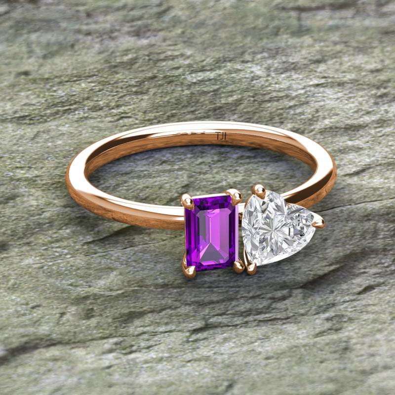 Emerald Shape Amethyst & Heart Shape White Sapphire 1.90 ctw Four Prong Womens 2 Stone Duo Engagement Ring 14K Rose Gold More Details ...