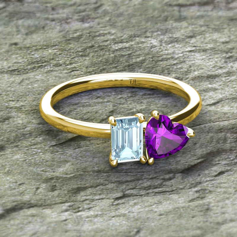 Emerald Shape Aquamarine & Heart Shape Amethyst 1.58 ctw Four Prong Womens 2 Stone Duo Engagement Ring 10K Yellow Gold More Details ...