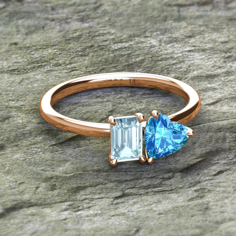 Simple and beautiful, this enchanting 2 Stone Duo Ring flaunting an Emerald Shape Aquamarine dazzling along with Heart Shape Blue Topaz are perfect for the women who have a modern outlook and are willing to be unique.