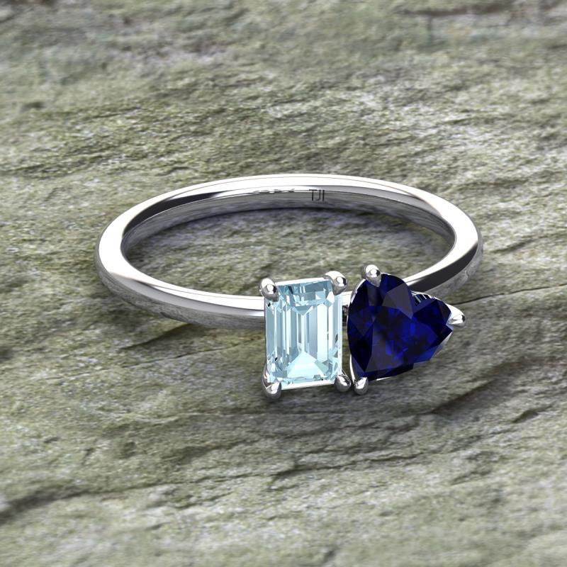 Emerald Shape Aquamarine & Heart Shape Lab Created Blue Sapphire 1.80 ctw Four Prong Womens 2 Stone Duo Engagement Ring 14K White Gold More Details ...