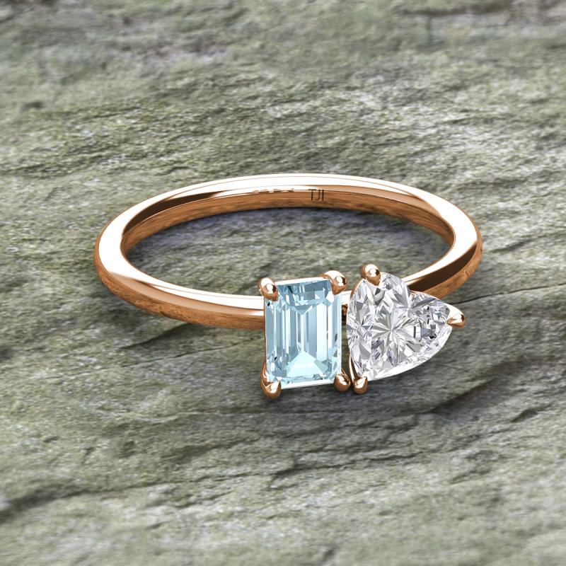 Emerald Shape Aquamarine & Heart Shape White Sapphire 2.00 ctw Four Prong Womens 2 Stone Duo Engagement Ring 14K Rose Gold More Details ...