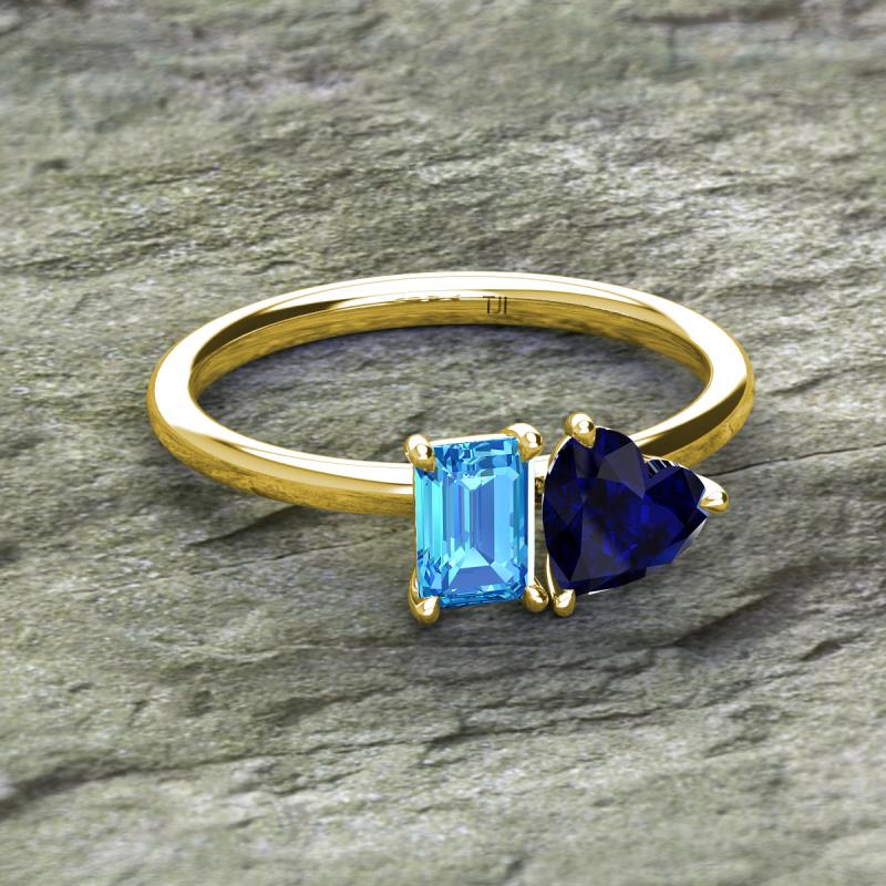 Emerald Shape Blue Topaz & Heart Shape Lab Created Blue Sapphire 2.20 ctw Four Prong Womens 2 Stone Duo Engagement Ring 10K Yellow Gold More Details ...