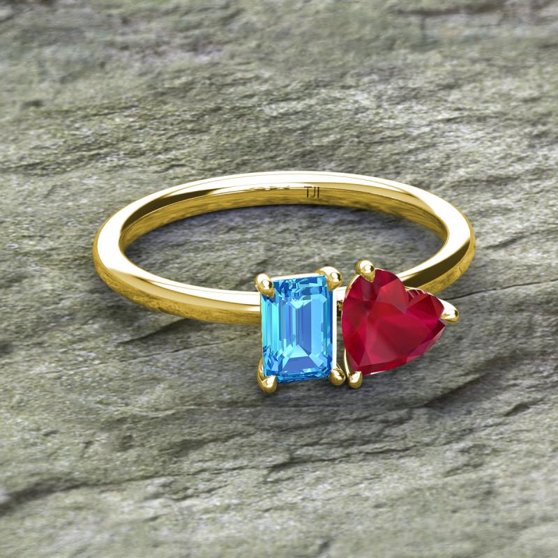 Emerald Shape Blue Topaz & Heart Shape Lab Created Ruby 2.10 ctw Four Prong Womens 2 Stone Duo Engagement Ring 10K Yellow Gold More Details ...