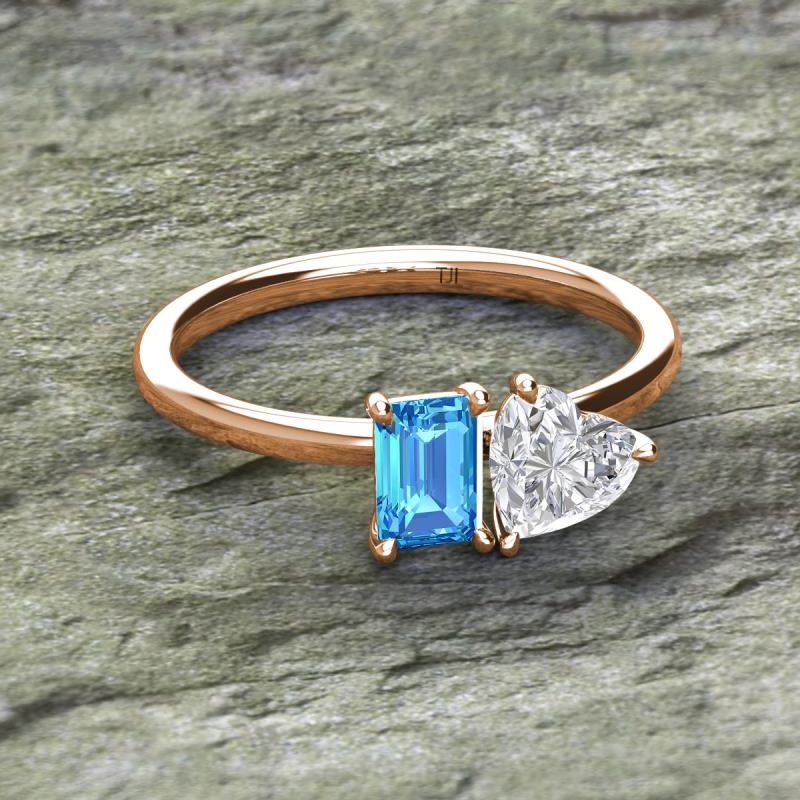 Emerald Shape Blue Topaz & Heart Shape White Sapphire 2.40 ctw Four Prong Womens 2 Stone Duo Engagement Ring 10K Rose Gold More Details ...