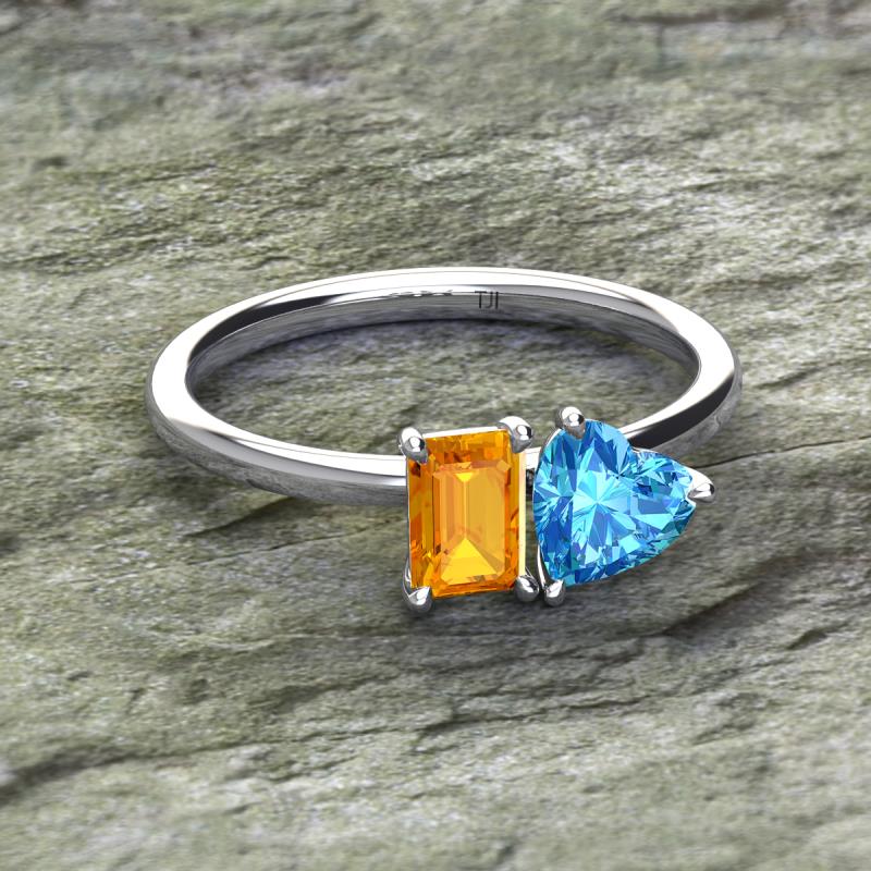 Emerald Shape Citrine & Heart Shape Blue Topaz 1.90 ctw Four Prong Womens 2 Stone Duo Engagement Ring 14K White Gold More Details ...