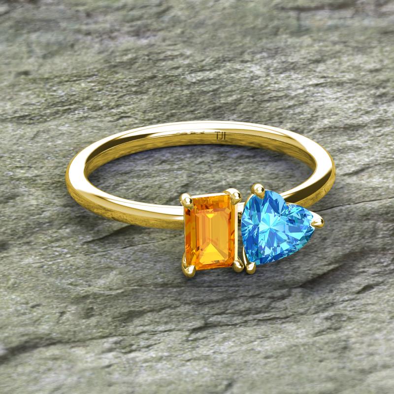 Emerald Shape Citrine & Heart Shape Blue Topaz 1.90 ctw Four Prong Womens 2 Stone Duo Engagement Ring 18K Yellow Gold More Details ...