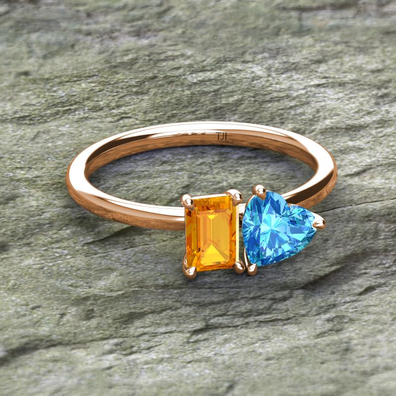 Emerald Shape Citrine & Heart Shape Blue Topaz 1.90 ctw Four Prong Womens 2 Stone Duo Engagement Ring 10K Rose Gold More Details ...