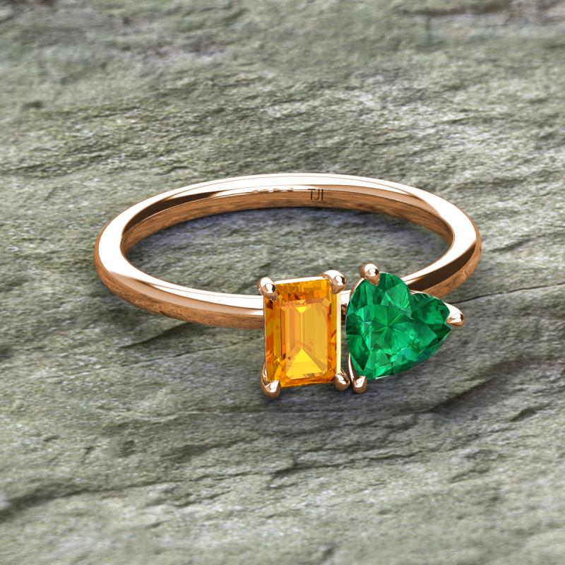 Emerald Shape Citrine & Heart Shape Lab Created Emerald 1.65 ctw Four Prong Womens 2 Stone Duo Engagement Ring 14K Rose Gold More Details ...
