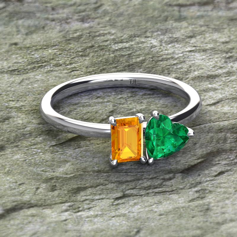 Emerald Shape Citrine & Heart Shape Lab Created Emerald 1.65 ctw Four Prong Womens 2 Stone Duo Engagement Ring 18K White Gold More Details ...