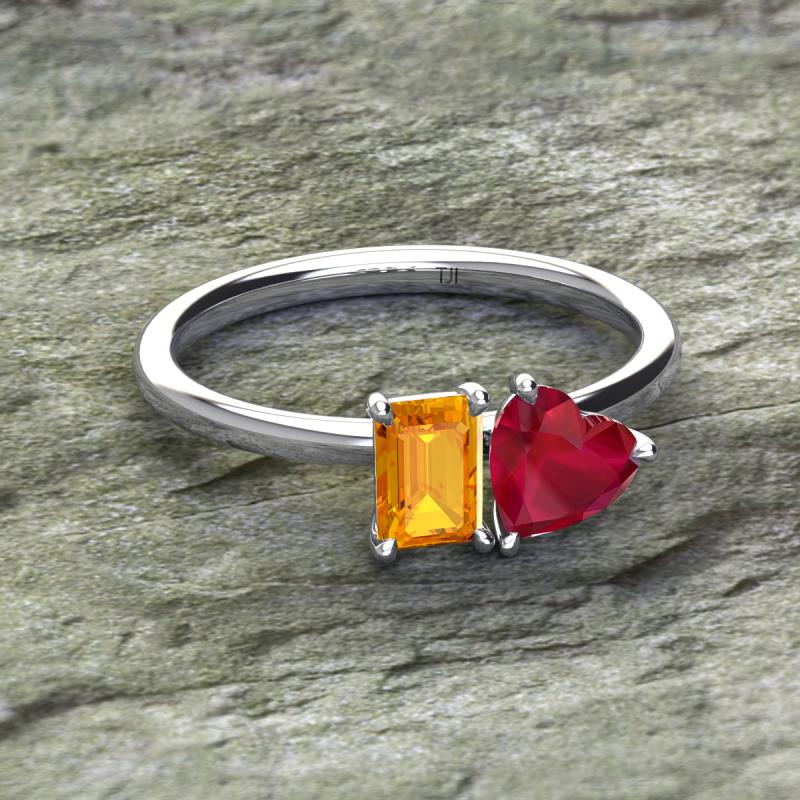 Emerald Shape Citrine & Heart Shape Lab Created Ruby 1.70 ctw Four Prong Womens 2 Stone Duo Engagement Ring 18K White Gold More Details ...