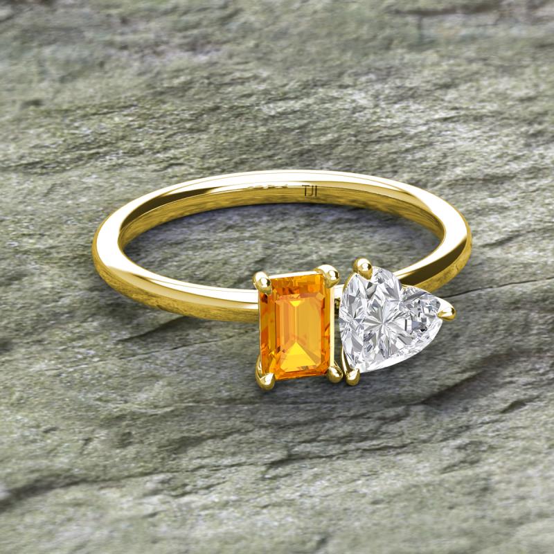 Simple and beautiful, this enchanting 2 Stone Duo Ring flaunting an Emerald Shape Citrine dazzling along with Heart Shape Lab Created White Sapphire are perfect for the women who have a modern outlook and are willing to be unique.
