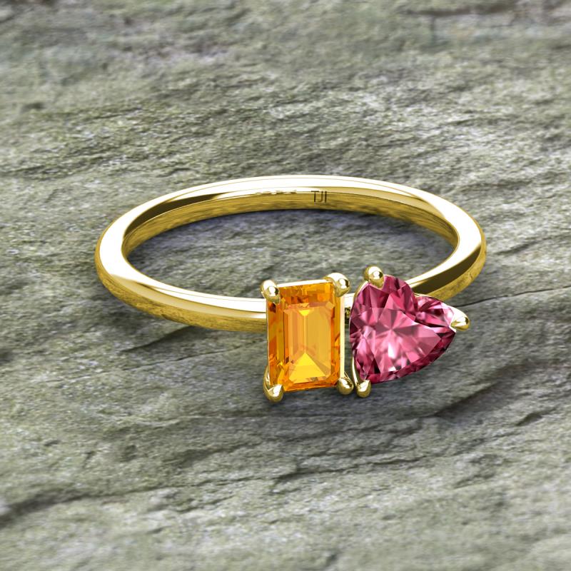 Emerald Shape Citrine & Heart Shape Pink Tourmaline 1.70 ctw Four Prong Womens 2 Stone Duo Engagement Ring 18K Yellow Gold More Details ...