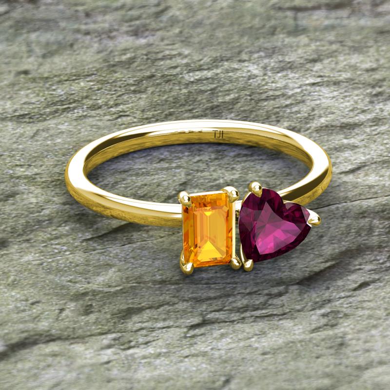 Emerald Shape Citrine & Heart Shape Rhodolite Garnet 2.00 ctw Four Prong Womens 2 Stone Duo Engagement Ring 10K Yellow Gold More Details ...