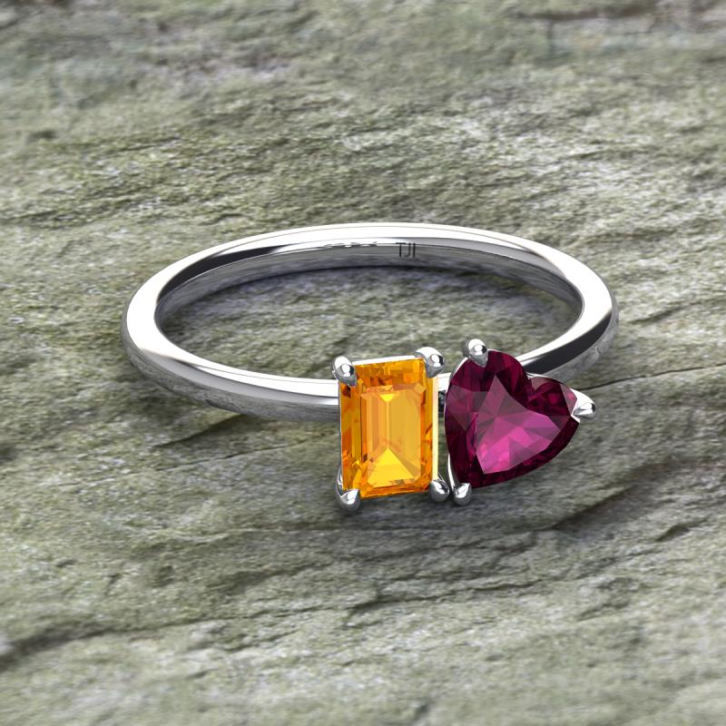 Emerald Shape Citrine & Heart Shape Rhodolite Garnet 2.00 ctw Four Prong Womens 2 Stone Duo Engagement Ring 925 Sterling Silver More Details ...