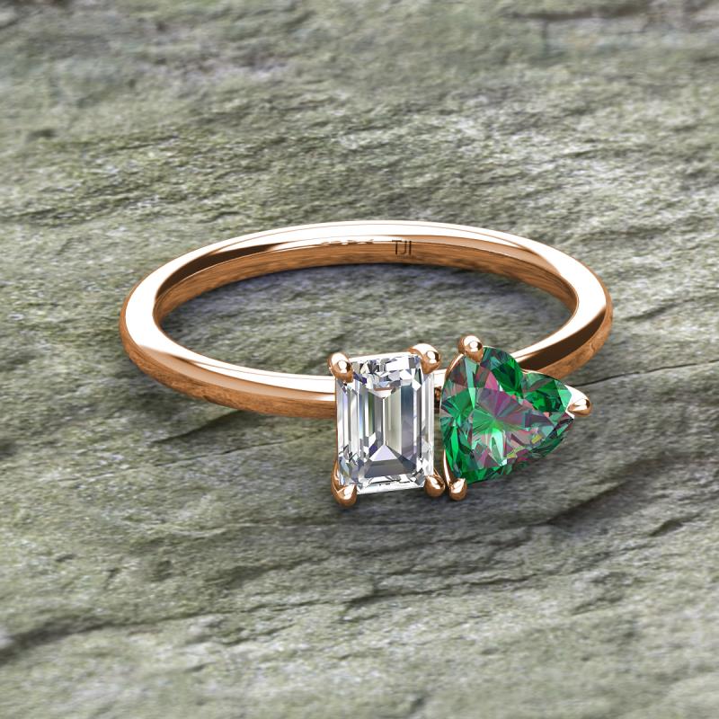 Emerald Shape Forever One Moissanite & Heart Shape Lab Created Alexandrite 1.65 ctw Four Prong Womens 2 Stone Duo Engagement Ring 18K Rose Gold More Details ...