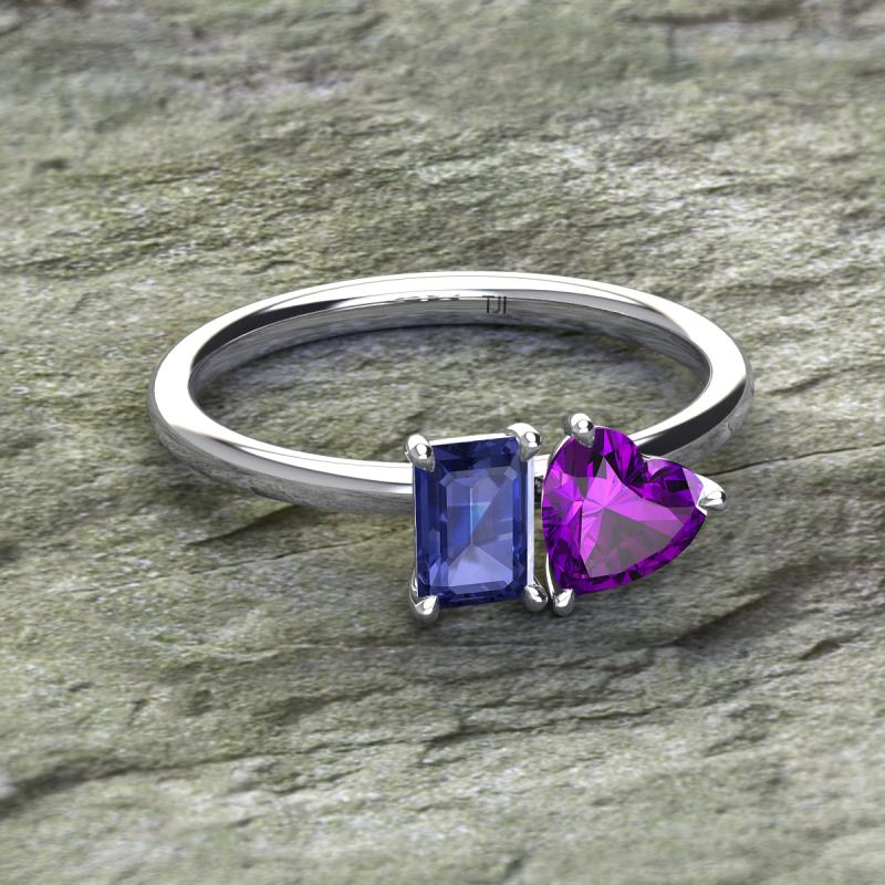 Emerald Shape Iolite & Heart Shape Amethyst 1.63 ctw Four Prong Womens 2 Stone Duo Engagement Ring 925 18K White Gold More Details ...