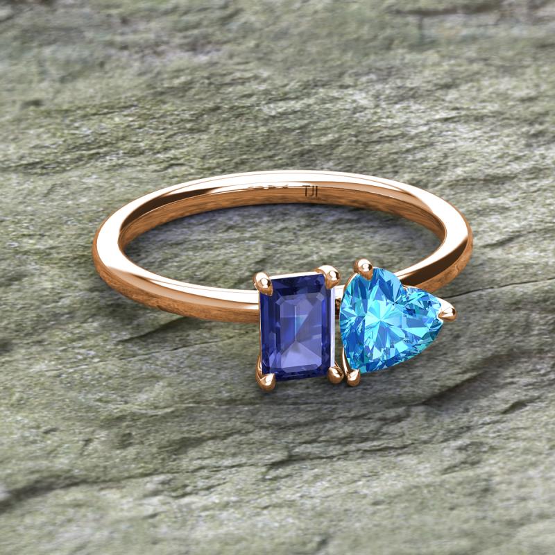 Emerald Shape Iolite & Heart Shape Blue Topaz 1.95 ctw Four Prong Womens 2 Stone Duo Engagement Ring 10K Rose Gold More Details ...
