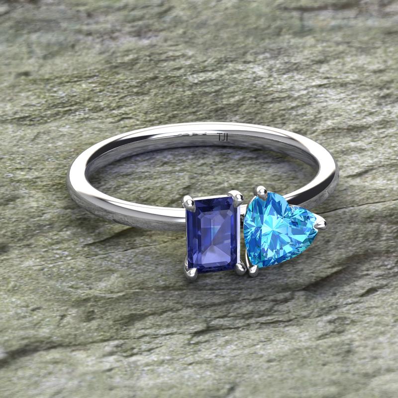 Emerald Shape Iolite & Heart Shape Blue Topaz 1.95 ctw Four Prong Womens 2 Stone Duo Engagement Ring Platinum More Details ...