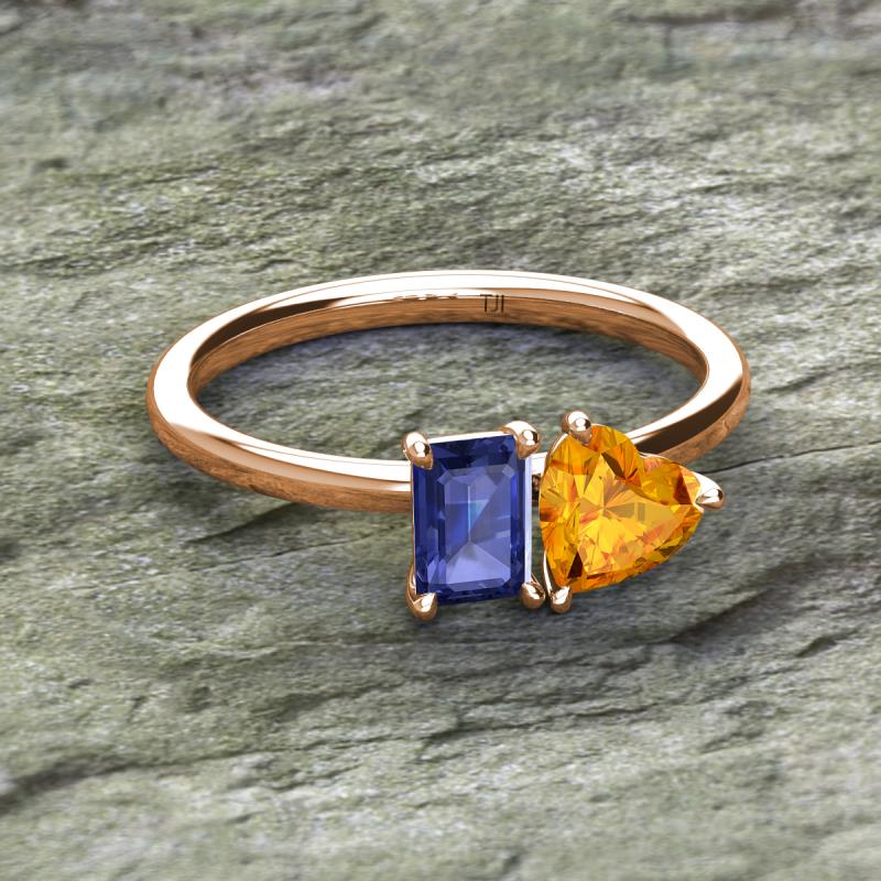 Emerald Shape Iolite & Heart Shape Citrine 1.63 ctw Four Prong Womens 2 Stone Duo Engagement Ring 18K Rose Gold More Details ...
