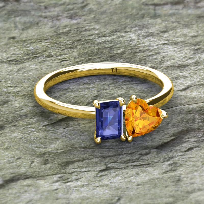 Emerald Shape Iolite & Heart Shape Citrine 1.63 ctw Four Prong Womens 2 Stone Duo Engagement Ring 10K Yellow Gold More Details ...