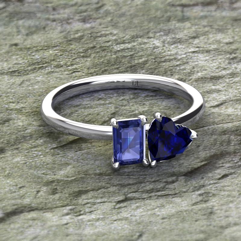 Emerald Shape Iolite & Heart Shape Lab Created Blue Sapphire 1.85 ctw Four Prong Womens 2 Stone Duo Engagement Ring 18K White Gold More Details ...