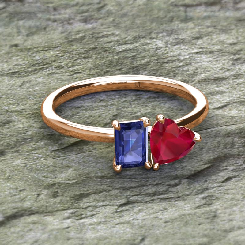 Emerald Shape Iolite & Heart Shape Lab Created Ruby 1.75 ctw Four Prong Womens 2 Stone Duo Engagement Ring 18K Rose Gold More Details ...