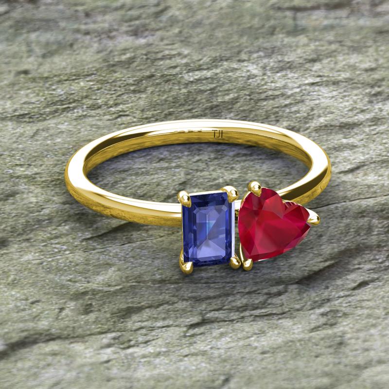 Emerald Shape Iolite & Heart Shape Lab Created Ruby 1.75 ctw Four Prong Womens 2 Stone Duo Engagement Ring 10K Yellow Gold More Details ...
