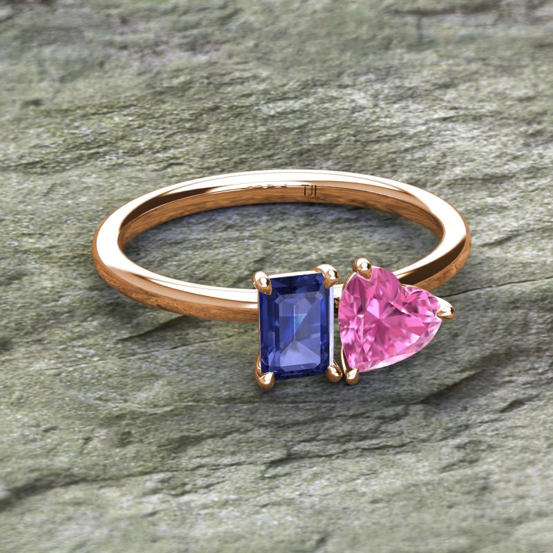 Emerald Shape Iolite & Heart Shape Pink Sapphire 1.95 ctw Four Prong Womens 2 Stone Duo Engagement Ring 18K Rose Gold More Details ...