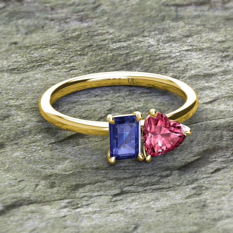 Emerald Shape Iolite & Heart Shape Pink Tourmaline 1.75 ctw Four Prong Womens 2 Stone Duo Engagement Ring 18K Yellow Gold More Details ...