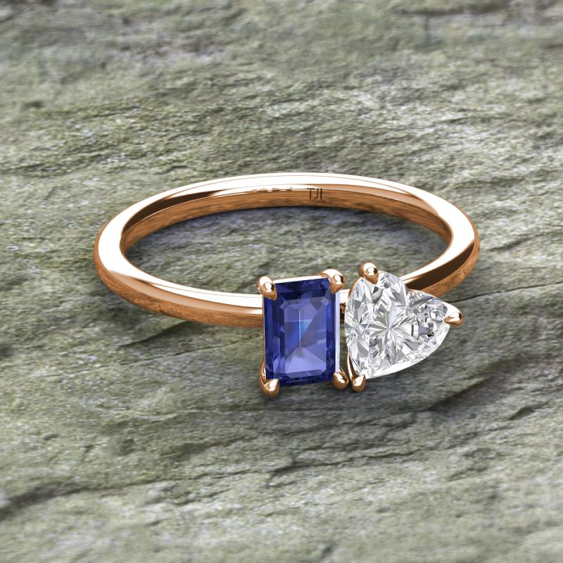 Simple and beautiful, this enchanting 2 Stone Duo Ring flaunting an Emerald Shape Iolite dazzling along with Heart Shape White Sapphire are perfect for the women who have a modern outlook and are willing to be unique.