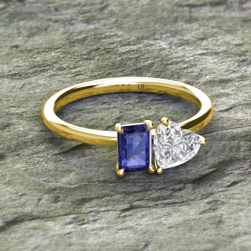 Simple and beautiful, this enchanting 2 Stone Duo Ring flaunting an Emerald Shape Iolite dazzling along with Heart Shape White Sapphire are perfect for the women who have a modern outlook and are willing to be unique.