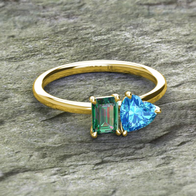 Emerald Shape Lab Created Alexandrite & Heart Shape Blue Topaz 2.20 ctw Four Prong Womens 2 Stone Duo Engagement Ring 10K Yellow Gold More Details ...