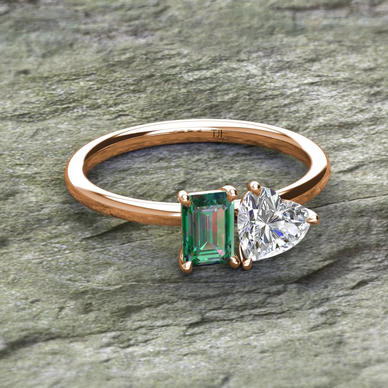 Emerald Shape Lab Created Alexandrite & Heart Shape Forever Brilliant Moissanite 1.90 ctw Four Prong Womens 2 Stone Duo Engagement Ring 14K Rose Gold More Details ...