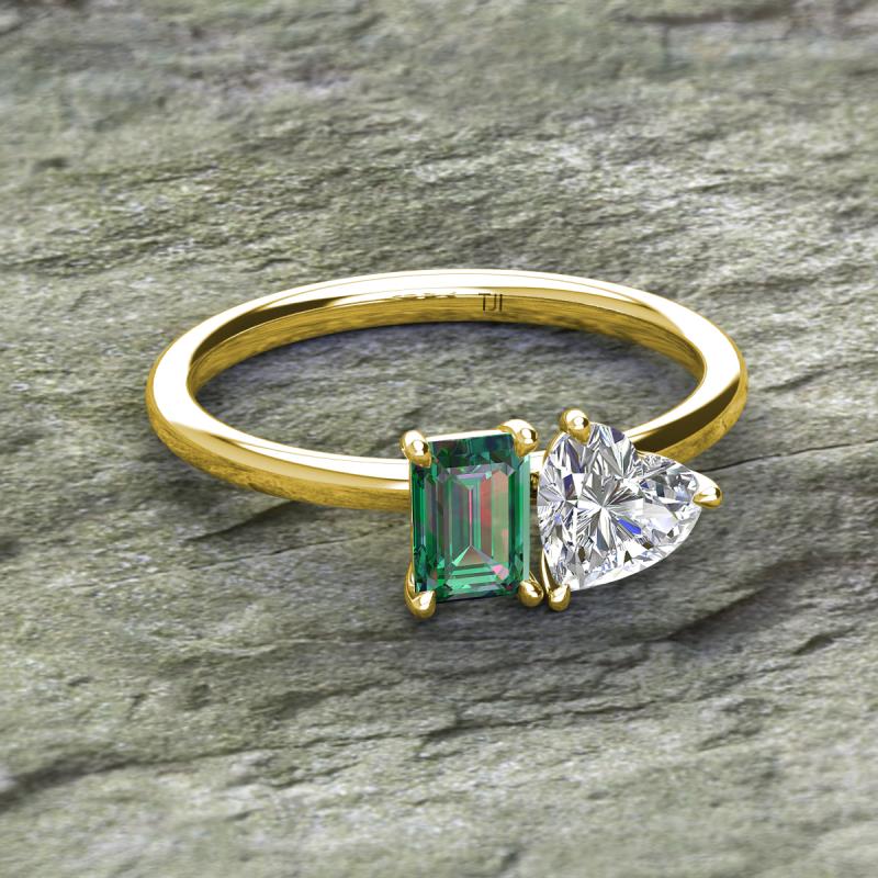 Emerald Shape Lab Created Alexandrite & Heart Shape Forever One Moissanite 1.90 ctw Four Prong Womens 2 Stone Duo Engagement Ring 18K Yellow Gold More Details ...