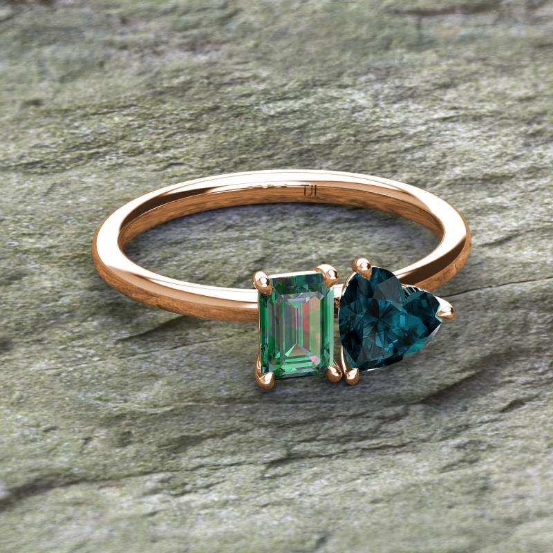 Emerald Shape Lab Created Alexandrite & Heart Shape London Blue Topaz 2.20 ctw Four Prong Womens 2 Stone Duo Engagement Ring 18K Rose Gold More Details ...