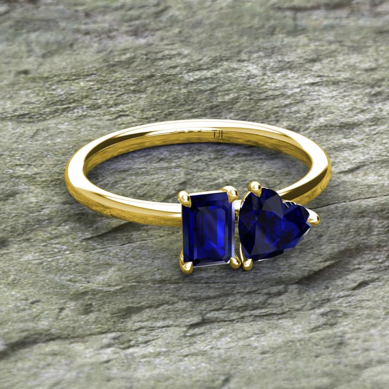 Emerald Shape Lab Created Blue Sapphire & Heart Shape Lab Created Blue Sapphire 2.47 ctw Four Prong Womens 2 Stone Duo Engagement Ring 10K Yellow Gold More Details ...