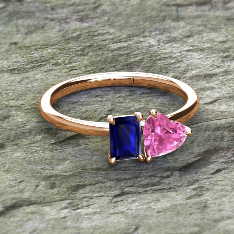 Emerald Shape Lab Created Blue Sapphire & Heart Shape Lab Created Pink Sapphire 2.40 ctw Four Prong Womens 2 Stone Duo Engagement Ring 10K Rose Gold More Details ...