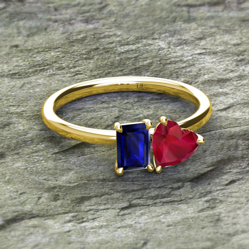 Emerald Shape Lab Created Blue Sapphire & Heart Shape Lab Created Ruby 2.47 ctw Four Prong Womens 2 Stone Duo Engagement Ring 18K Yellow Gold More Details ...