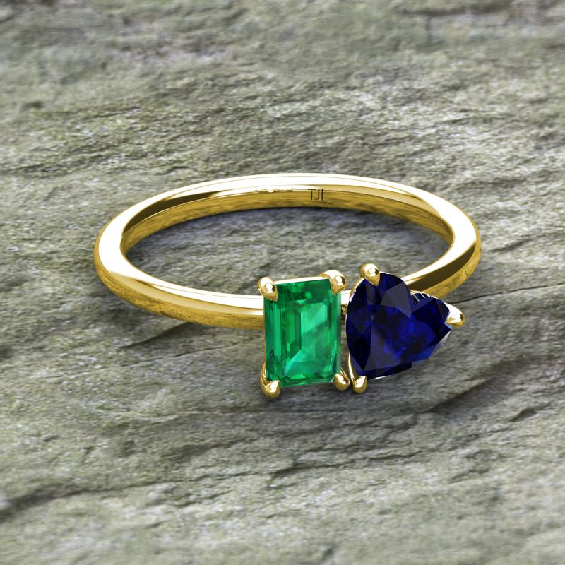 Emerald Shape Lab Created Emerald & Heart Shape Lab Created Blue Sapphire 1.85 ctw Four Prong Womens 2 Stone Duo Engagement Ring 10K Yellow Gold More Details ...