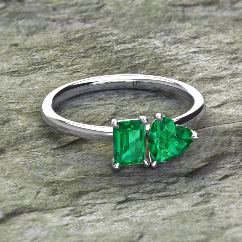 Simple and beautiful, this enchanting 2 Stone Duo Ring flaunting an Emerald Shape Lab Created Emerald dazzling along with Heart Shape Lab Created Emerald are perfect for the women who have a modern outlook and are willing to be unique.