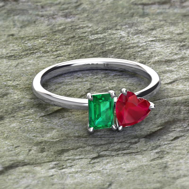 Simple and beautiful, this enchanting 2 Stone Duo Ring flaunting an Emerald Shape Lab Created Emerald dazzling along with Heart Shape Lab Created Ruby are perfect for the women who have a modern outlook and are willing to be unique.